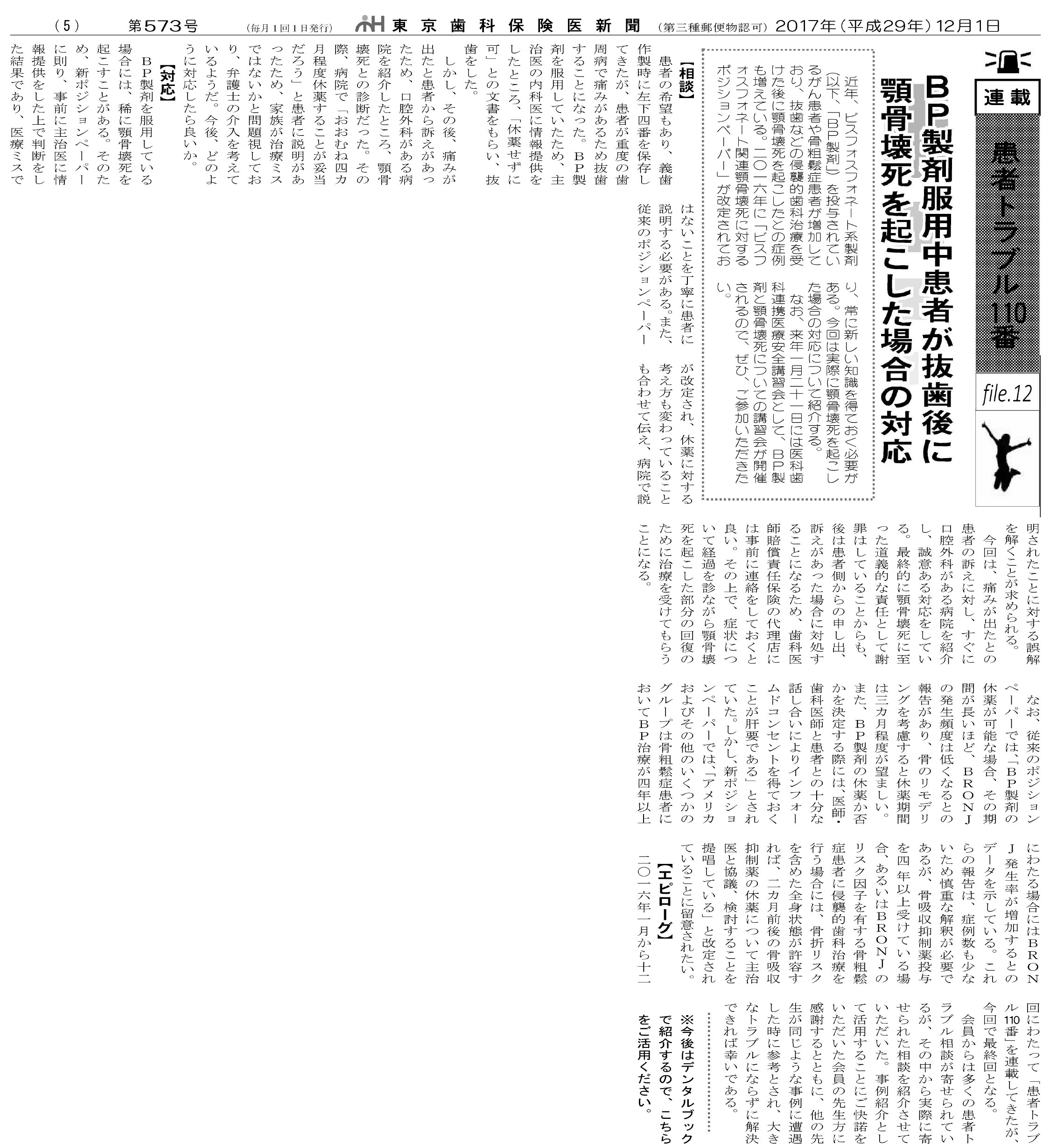 2017年12月号 BP製剤服用中患者が抜歯後に顎骨