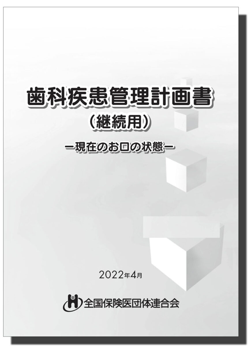 歯科疾患管理料(歯管)はう齲蝕、歯肉炎、歯周炎、歯の疾患等継続的な口腔管理が必要な患者さんに、初回用と継続用を用意いたしました。継続用には歯科衛生実地指導の文書も加えてあります。