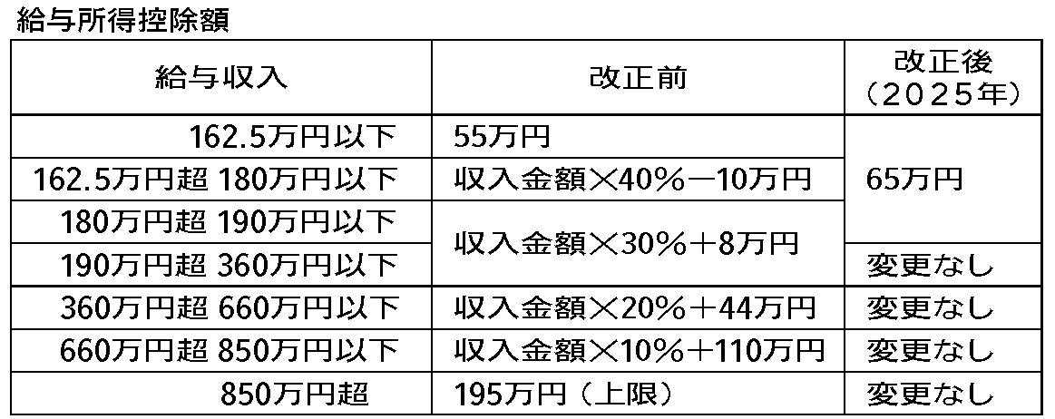 給与所得控除額が改正され、最低保障額が65万円(改正前:55万円)に引き上げられました。